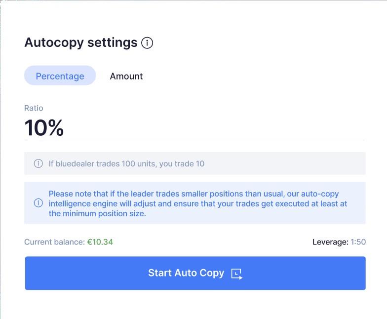 you’d like to Autocopy, deposit the amount of funds you’d like to allocate on the